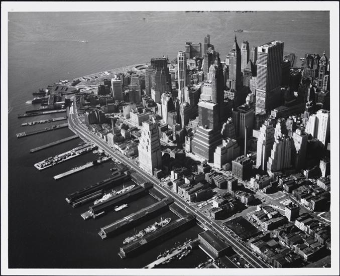 [Aerial view of Brooklyn Piers and Manhattan.]