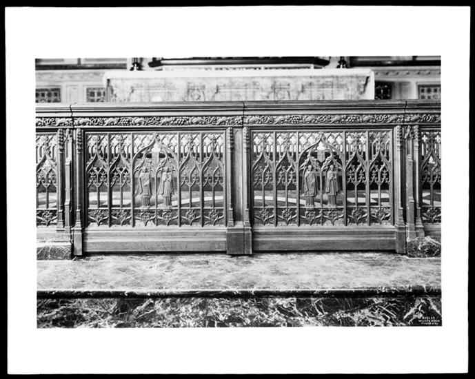 Wall Street. Trinity Church, Dix Memorial Chapel, view outside of screen.