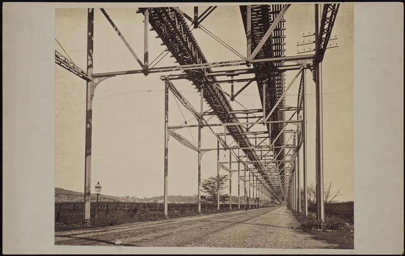 [Elevated railroad curve 110th Street and 8th Avenue, looking north.]