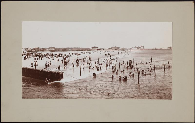 Crowd of Bathers on Beach, front of Steeplechase, Coney Island, N.Y.