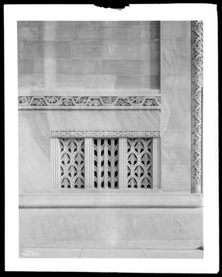 East 65th Street and Fifth Avenue. Temple Emanu-el, Chapel Beth-el. Detail of stone grille near roof ledge