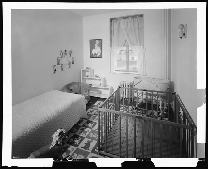 Queensbridge Housing, model apartment, 4 1/2 rooms, $22.75 a month, bedroom.