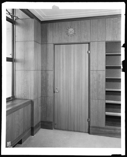 Grand Army Plaza and Eastern Parkway. Brooklyn Public Library, librarians' private office, view of shelves.