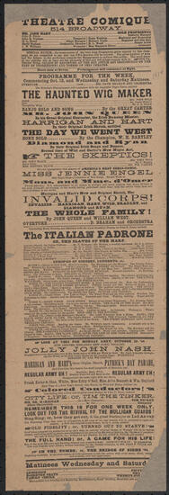Monday, March 11, 1878, Harrigan and Hart will appear in Edward Harrigan's great hit of the season, "Sullivan's Christmas"