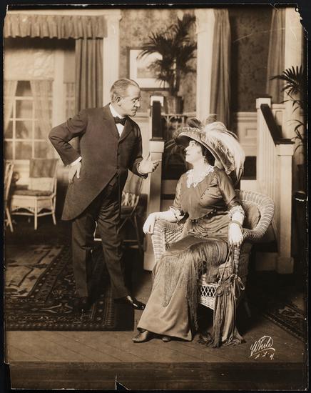 [William H. Crane as Nicholas Van Alstyne, Douglas Fairbanks as Bertie Van Alstyne and Patricia Collinge as Agnes Gates in "The New Henrietta".]