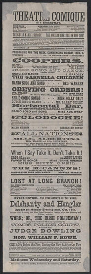 Program for the week commencing October 26, the evening's entertainment will commence with the laughable Negro farce, entitled "The Coopers"