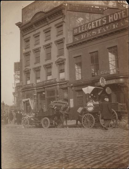 [Leonard Street, south side, looking west from Baxter Street to Centre Street.]