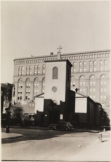 [West side of Hudson Street, looking north from Barrow Street to St. Luke's Church.]