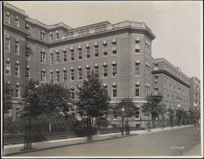 Lenox Avenue and 136th Street. Harlem Hospital, exterior.
