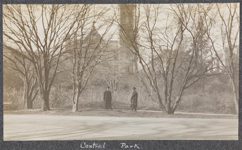 Central Park [A. Bethesda Fountain, Central Park ; B. Mr. Yamamoto in front of Bethesda Fountain ; C. Central Park ; D. Central Park ; E. Central Park ; F. Central Park.]