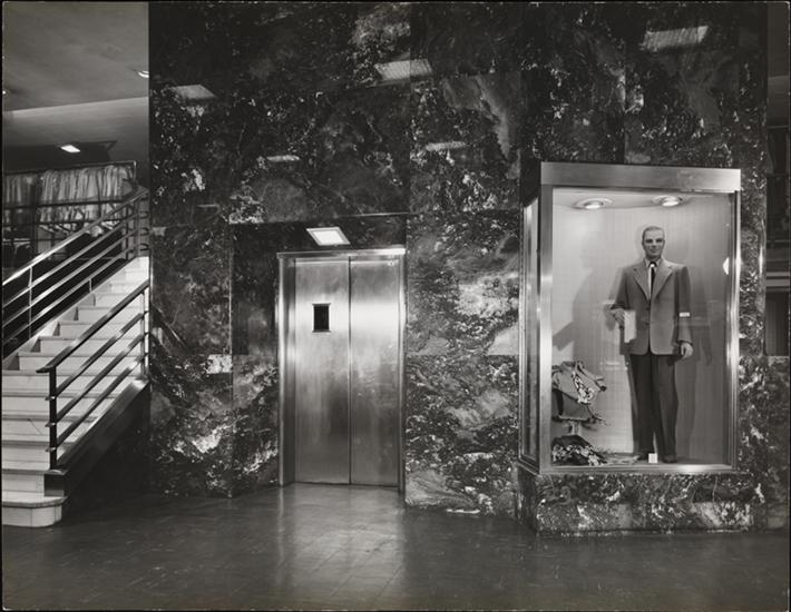 [Interior of Crawford Store with mannequins and suit jackets.]
