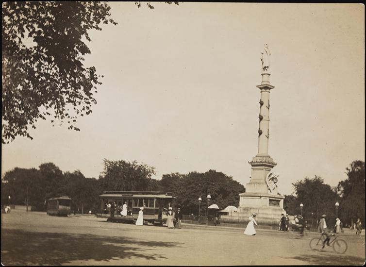 [Columbus Circle, showing laying of cornerstone of Columbus Monument.]