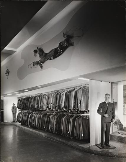 [Interior of Crawford Store with suit jackets.]