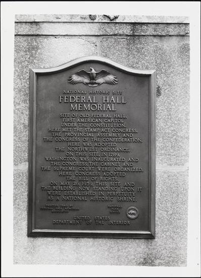 [Sculpture of George Washington outside of the Federal Hall Memorial.]