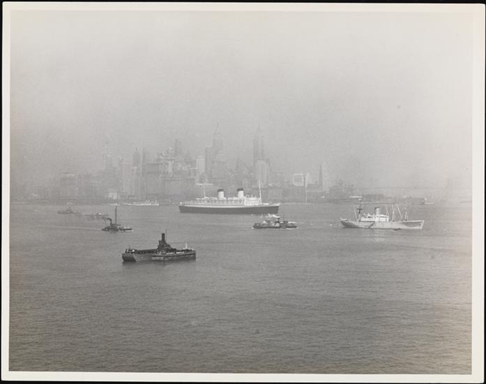 [Brooklyn Bridge Tower and Lower Manhattan.]