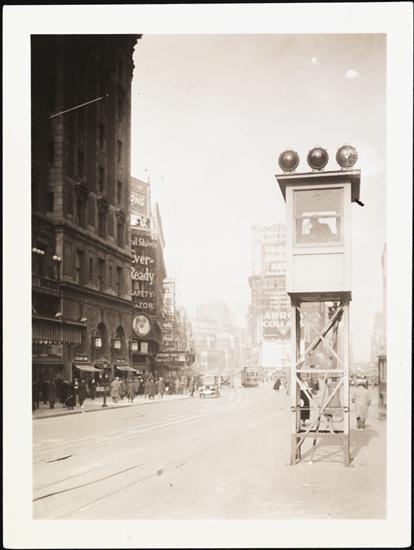 Broadway Series. View looking north from 44th Street (Times Square), where Broadway crosses 7th Avenue.