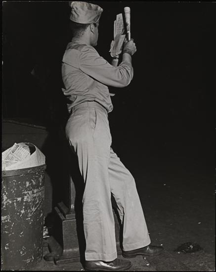News from Home - a Ray of Sunshine. [Soldier at a newspaper stand.]