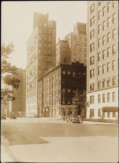 Park Avenue at the N.E. corner of East 54th Street. Apartment house.