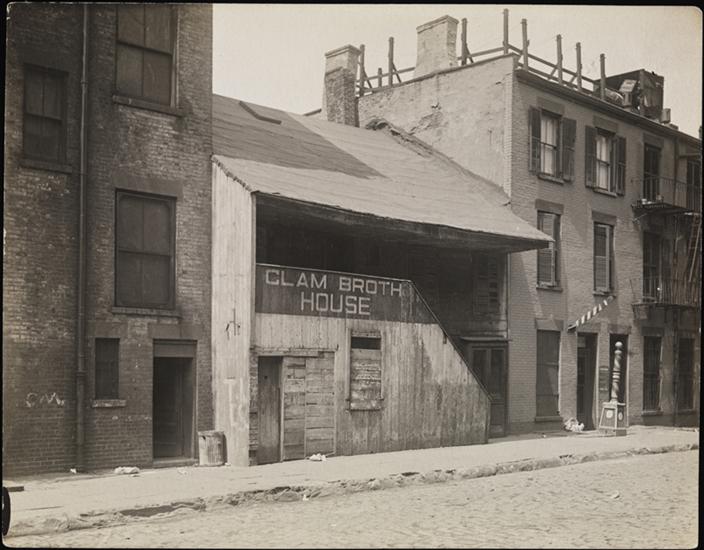 [The "Clam Broth" and other old buildings on the west side of Weehawken Street.]