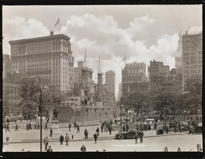 Untitled [Men sitting at base of flagstaff, Union Square]