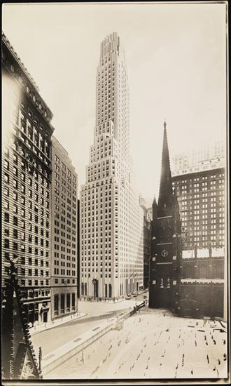 [Trinity Church opposite Wall Street, against Irving Trust Company Building.]