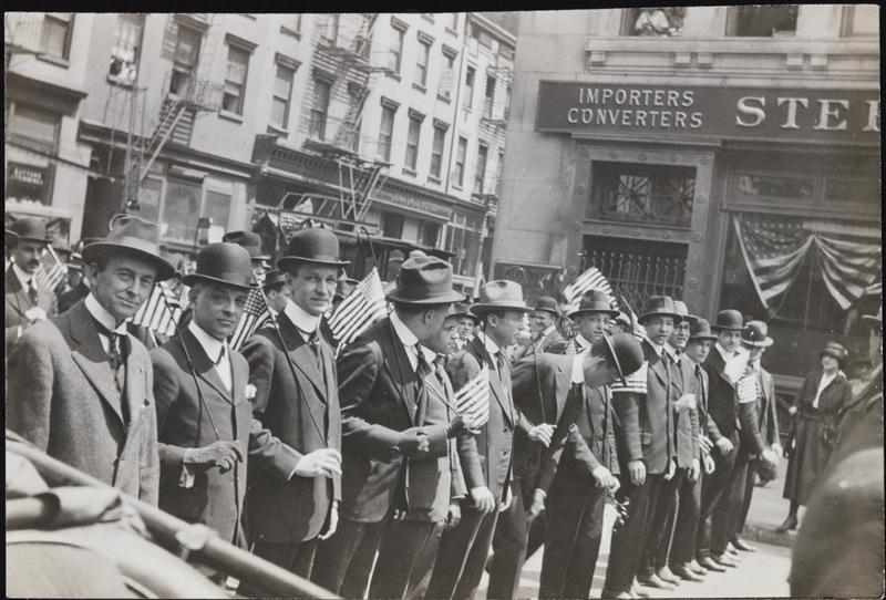 [Men lined up in a parade.]