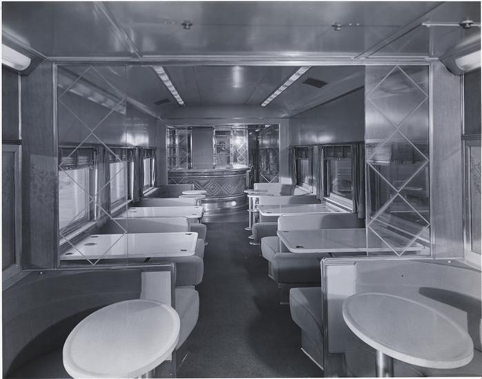 [Cocktail lounge in an Atchison, Topeka and Santa Fe Railway train.]