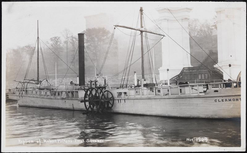 First Steamboat on Hudson River. Robert Fulton's "Clermont" 1807