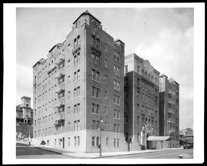 448 Central Park West at the S.W. corner 105th Street. Larchmont apartment house.