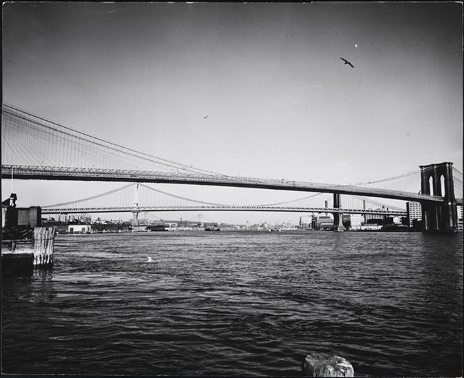 [Lower Manhattan with the Brooklyn and Manhattan Bridges.]