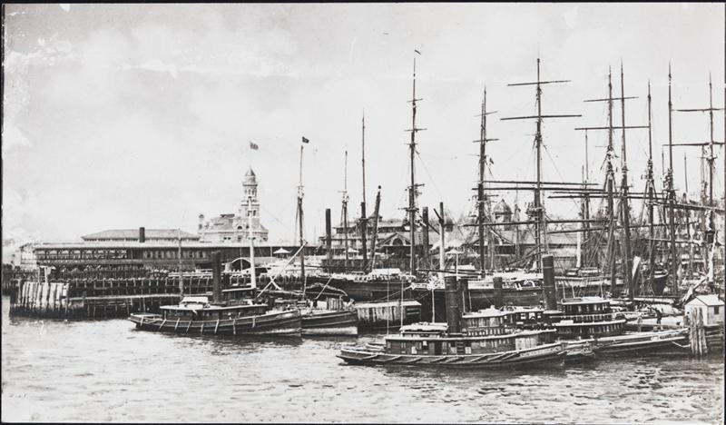 [Looking south over the East River from South Street Seaport toward Brooklyn.]