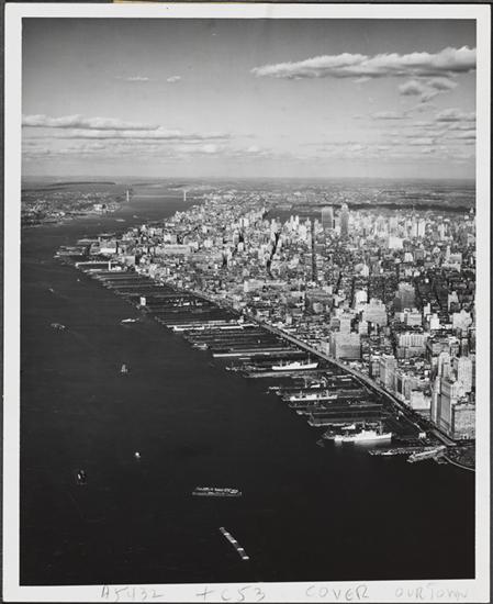 [Aerial view of Brooklyn Piers and Manhattan.]