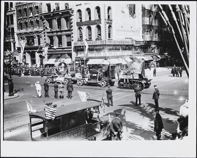 [Victory Loan Parade, battleship "Victory" sailing down 5th Avenue.]