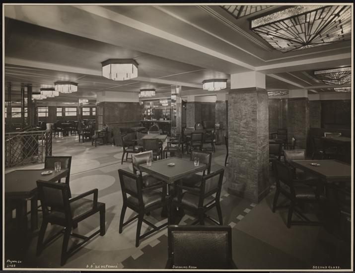 French Line, S.S. "Ile de France", Interior, Smoking Room.
