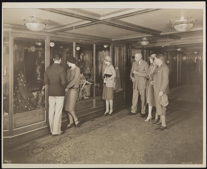 M.S. "Saturnia" Pier 90 North River, Interior, Models Looking in Shop Window.