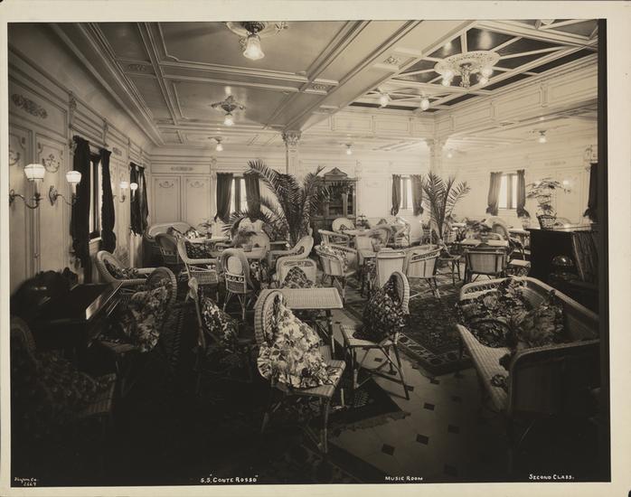 Lloyd Sabaudo Line, S.S. "Conte Rosso", Col Serrati, Interior, Veranda Cafe.