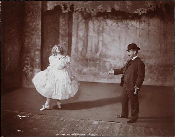 Description Rehearsal for an unidentified Columbia College amateur theatrical presented in 1904.