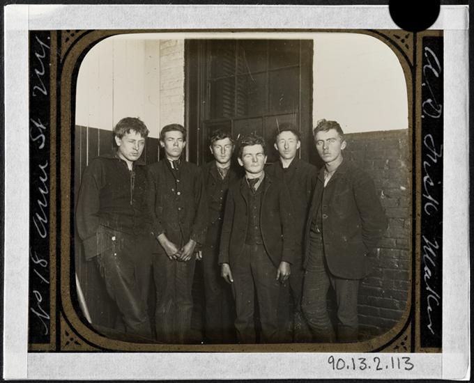 Police Station Lodging Room 4. Oak Street Station, Six boys picked out of the draft in the men's lodging room.