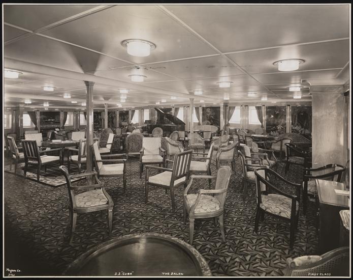 French Line, S.S. "Cuba" Pier 57 North River, First Class, Interior, Salon.