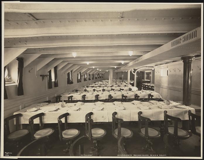 Italia-America Shipping Corp., S.S. "Colombo", Pier 97 North River, Third Class Dining Room.
