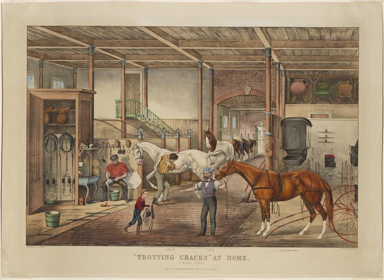 [The trotting horse Judge Fullerton biting off man's hat.]