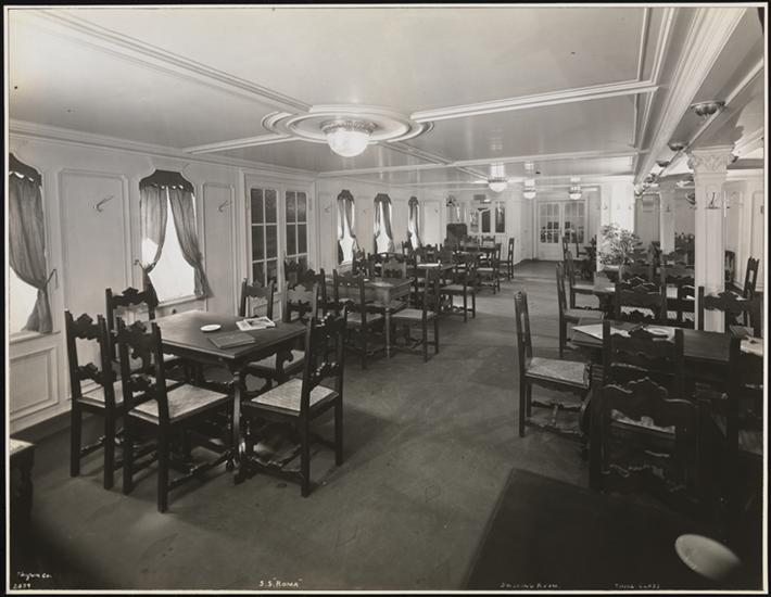 Italia-America Shipping Corp., S.S. "Roma", Pier 97 North River, Interior, First Class, Dining Salon.