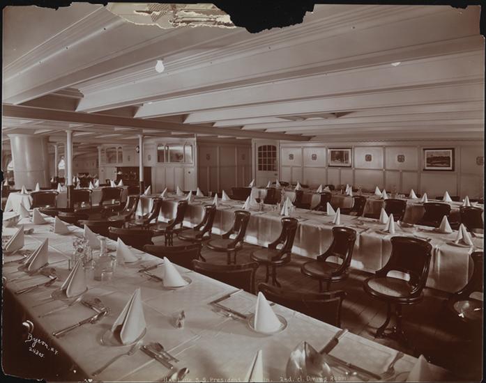 Second class dining room on the S.S. "President Lincoln".