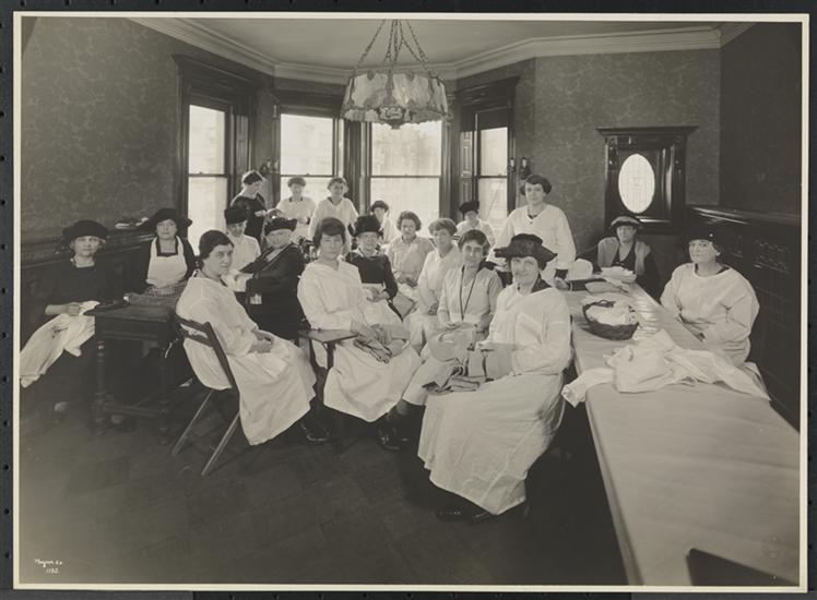 Interior, Group, Women's Sewing Circle, 157 East 94th Street.