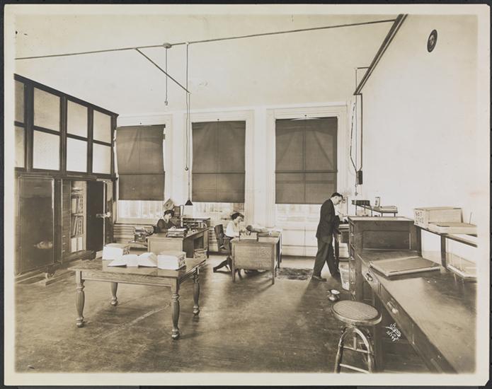 Two women and a man working in an office at the Lincoln & Ulmer Cigar Co.