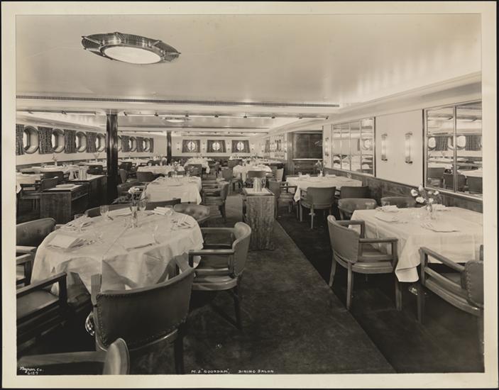 S.S. "Nieuw Amsterdam", 5th Street, Hoboken, N.J., Cabin Class, Dining Salon from Above.