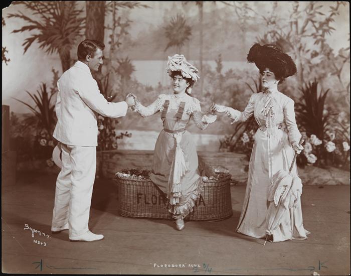 "'Floradora' Act I" on neg. | Cropping notes in non-repro blue pencil on recto. | Photographer's stamp on verso, including credit line and permission to publish.