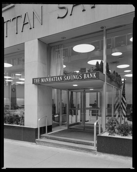 45th Street and Vanderbilt Avenue. Manhattan Savings Bank, street-level view of front.