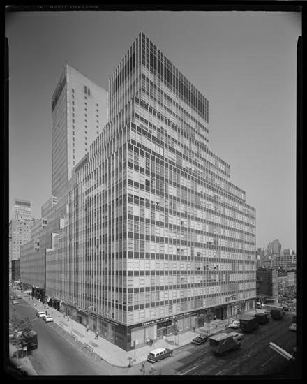 1285 6th Avenue between 51st and 52nd Street. Equitable Life Assurance, new home office, general exterior from N.E. from the roof of Rose Restaurant on 52nd Street.