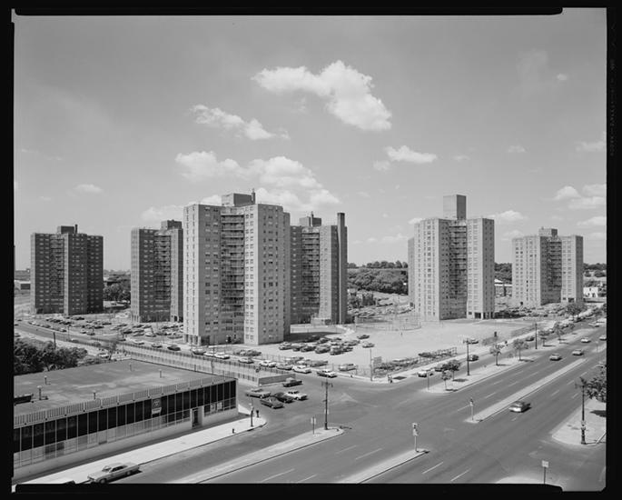Queens Boulevard between 59th and 61st Street. Big Six co-op apartment buildings, general view from S.W., rear and side.